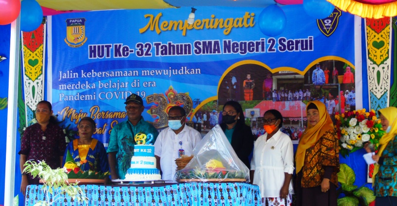 Ulang tahun ke -32 SMA NEGERI 2 SERUI, 05 JULI 2021 menjadi momen istimewa karena hari bahagia itu diperingati di tengah pandemi coronavirus disease ( Covid 19 ). Semangat peringatan HUT ke -32 SMA N 2 dibawah tema " MENJALIN KEBERSAMAAN MEWUJUDKAN MERDEKA BELAJAR DI ERA PANDEMI COVID -19". Tema tersebut memberi makna bahwa merdeka belajar adalah konsep memberikan kemerdekaan di dunia pendidikan untuk kita terus berinovasi, di tengah perkembangan teknologi yang semakin pesat. Peringatan HUT SMA N 2 tahun ini, yang dilaksanakan dengan cara sederhana dan tetap mematuhi protokol kesehatan covid -19 dan hanya dihadiri oleh komite Sekolah , para guru, staf tata usaha, satpam dan pengurus osis.